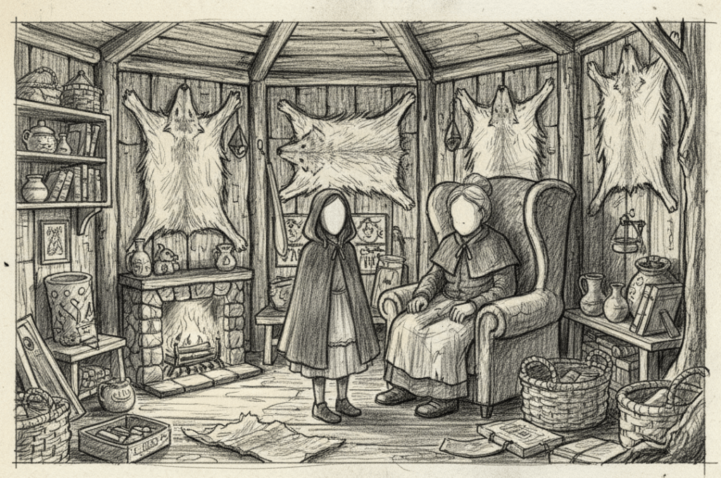 ‘Didn’t go to the cottage. Didn’t eat Grandma. Just… walked away. Became a vegetarian. Took up pottery. Wrote poetry about the moon.’